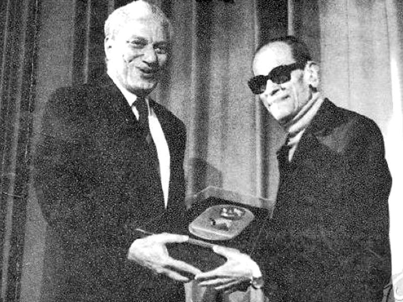 الكاتب المصري سعد الدين وهبة مع يوسف السباعي في إحدى الفعاليات الفنية عام 1973