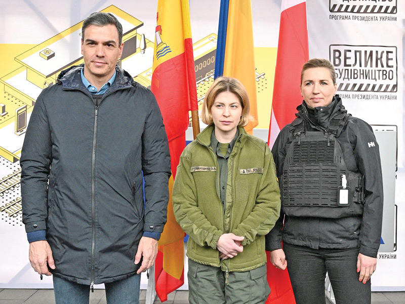 في غضون ذلك، أعلن رئيس بلدية مدينة خاركيف إيهور تيريكوف أن ثاني أكبر مدن البلاد «تعرضت لقصف عنيف وشرس وقتل 5 مدنيين»، أمس.وأضاف أن نحو مليون شخص لا يزالون داخل المدينة الشمالية الشرقية، فيما خرج منها نحو 30 في المئة من السكان أغلبهم من النساء والأطفال والمسنين.بدوره، قال حاكم منطقة لوغانسك سيرغي هايداي إن الهجمات الروسية على مدينة سيفيرودونيتسك بالشرق دمرت جميع مخازن المواد الغذائية، مشيرا إلى أنه «لم يبق في سيفيرودونيتسك مخزن واحد سليم».وبينما عثر على جثث 9 مدنيين في مقبرة جماعية جديدة في بوروديانكا بالقرب من كييف يحمل بعضها «آثار تعذيب»، حسبما أعلنت شرطة العاصمة الأوكرانية، كشفت نائبة رئيس الوزراء الأوكراني أولغا ستيفانيشينا أن مشارح منطقة كييف باتت تضم أكثر من ألف جثة لمدنيين.زيارة دعم