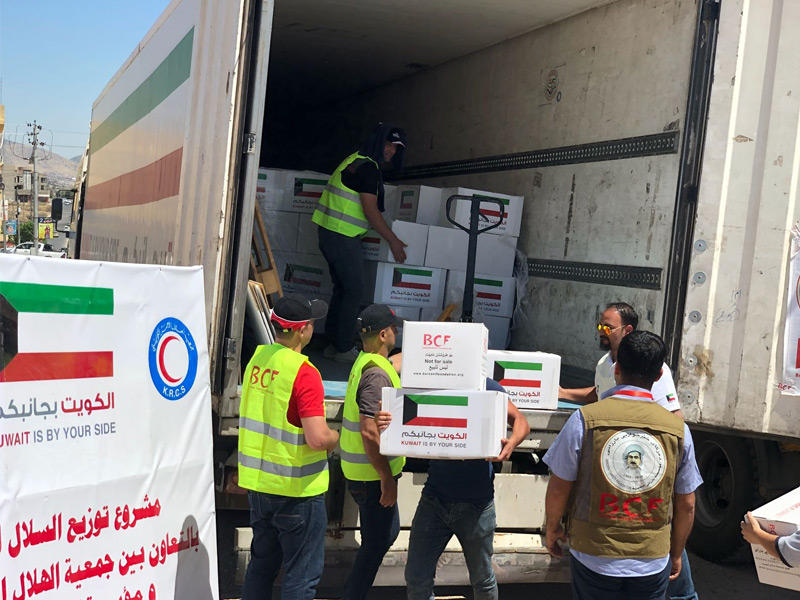وفي اليمن، وزعت جمعية الهلال الأحمر الكويتي 2418 سلة غذائية متكاملة على أسر نازحة ومتضررة في أربع محافظات يمنية، وأيضاً الجمعية الخيرية للتنمية والتطوير الكويتية 230 سلة غذائية على أسر نازحة بمحافظة مأرب ضمن حملة «الكويت بجانبكم».ويأتي ذلك بعدما قدمت الهيئة الخيرية الإسلامية العالمية 201 سلة غذائية لأسر فقيرة بمحافظة الجوف اليمنية فيما دعمت جمعية بلد الخير 119 أسرة نازحة في مأرب بسلال غذائية وزعت في الأسبوع الأول من شهر رمضان.وعلى صعيد متصل في اليمن أيضاً، وضع مسؤولون محليون، أمس الأول، حجر الأساس لمستشفى المرحوم عدنان العوجان الصحي الذي يستفيد منه 15 ألف شخص بمنطقة دمون في محافظة حضرموت شرقي اليمن بإشراف جمعية الشيخ عبدالله النوري الخيرية بالكويت.