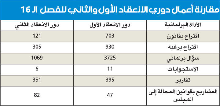 إحصائية لـ الجريدة• تُظهِر انخفاض النشاط البرلماني في دور الانعقاد الثاني بنسبة 70% عن الأول