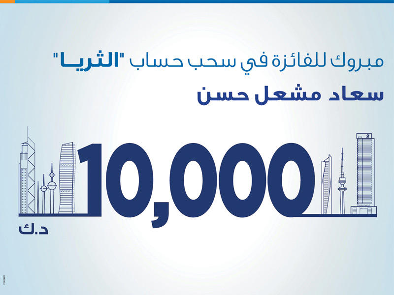 أعلن بنك برقان فوز سعاد مشعل حسن، في سحب حساب "الثريا للراتب" الشهري بجائزة بقيمة 10.000 د.ك. وأوضح البنك أنه يمكن فتح الحساب بالدينار الكويتي، أو غيره من العملات، وأنه يمنح صاحبه العديد من المميّزات، منها الحصول على قرض أو بطاقة ائتمانية تناسب احتياجاته، والاستفادة من العروض والخصومات على مدار العام.