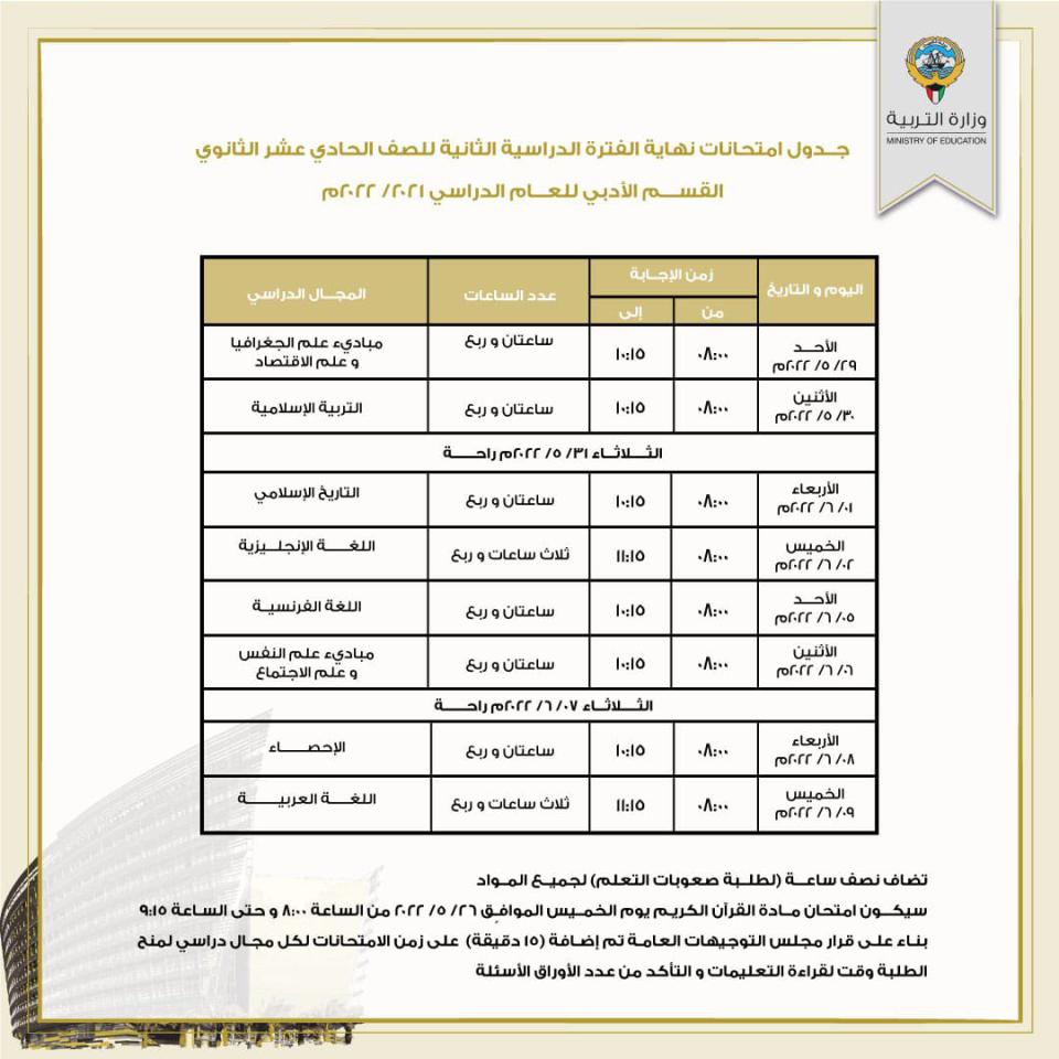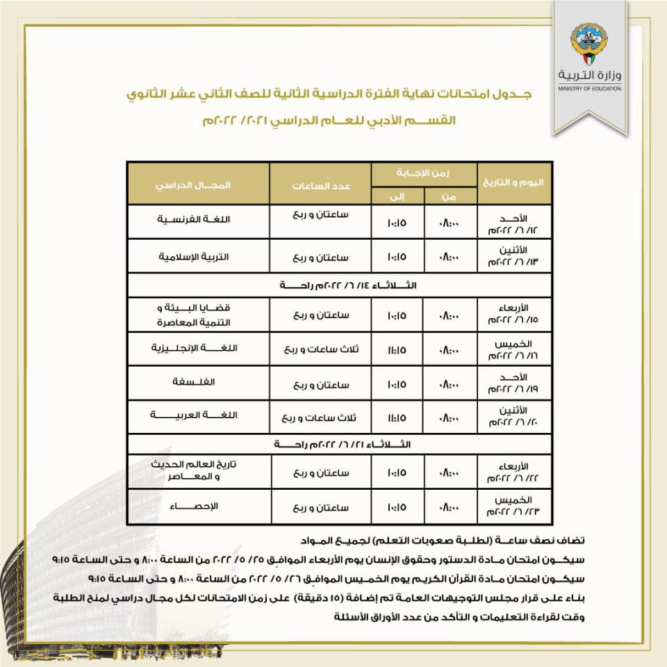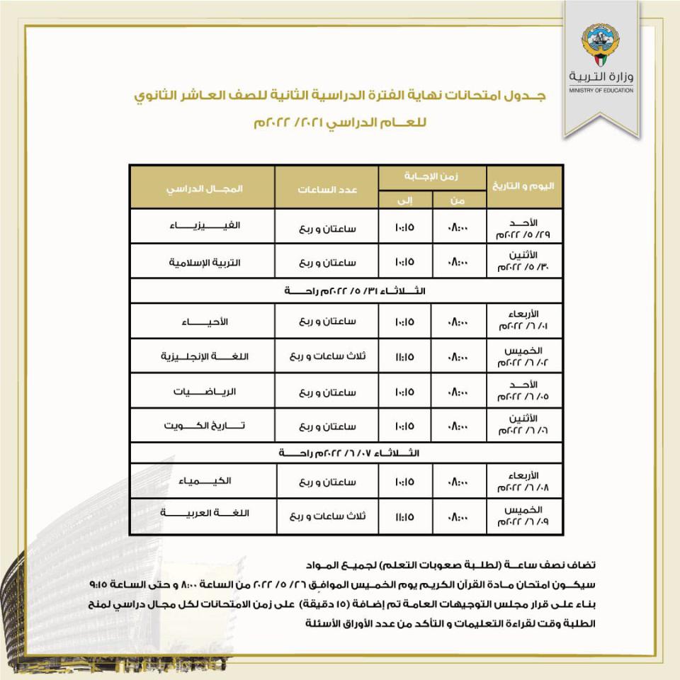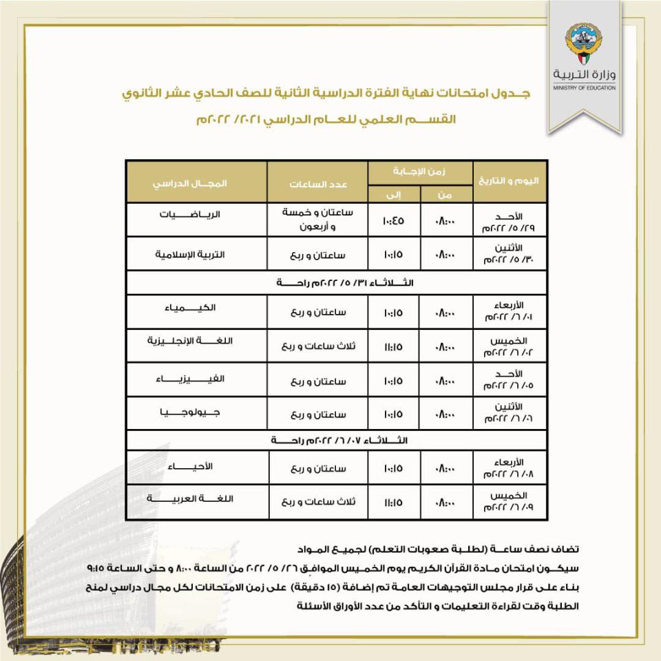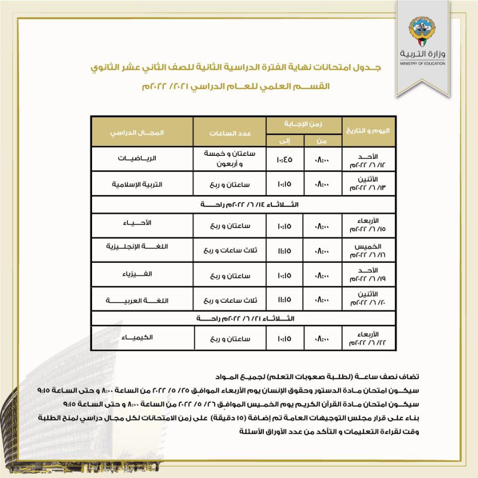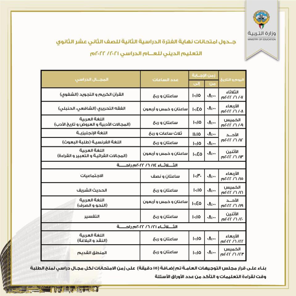 اعتمد الوكيل المساعد للتعليم العام أسامة السلطان جداول امتحانات نهاية الفترة الثانية للمرحلة الثانوية، متمنياً لجميع الطلبة التوفيق والنجاح.
