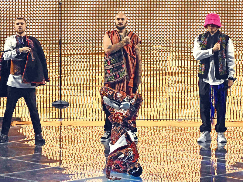 أما بالنسبة للفائزين العام الماضي، وهي فرقة مونيسكين الإيطالية، فسيقدمون عرضاً في الحفلة النهائية للمسابقة غداً بأغنية "سوبرموديل".وفي الشهر الماضي بمهرجان كوتشيلا في كاليفورنيا، هتف المغني الرئيسي للفرقة داميانو ديفيد: "أوكرانيا حُرة".
