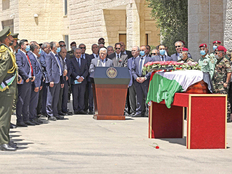 على وقع تخبّط إسرائيل وتغيير روايتها للمرة الرابعة خلال 24 ساعة عن الجريمة البشعة، التي أثارت استنكاراً دولياً ودعوات عبر العالم لإجراء تحقيق مستقل، شارك مسؤولون فلسطينيون وممثلون عن الفصائل ودبلوماسيون أجانب ومواطنون في مراسم رسمية في مقر الرئاسة الفلسطينية في رام الله أقيمت لوداع وتكريم الصحافية المخضرمة شيرين أبوعاقلة، التي أصابتها رصاصة الغدر في وجهها خلال تغطيتها عملية للجيش الإسرائيلي في مخيم جنين.ومع تزايد الخناق الدولي على إسرائيل، التي تراجعت جزئياً عن رواية رئيس الوزراء الإسرائيلي نفتالي بينيت أن مسلحين فلسطينيين قتلوا أبوعاقلة بحديث وزير الدفاع بيني غانتس عن احتمال أن يكون جندي إسرائيلي فعل ذلك، حمّل الرئيس الفلسطيني محمود عباس الاحتلال الإسرائيلي مسؤولية اغتيال مراسلة الجزيرة، مؤكداً الذهاب للمحكمة الجنائية الدولية لمعاقبة المجرمين.وقال عباس، خلال مراسم تشييع وتكريم الشهيدة بوسام نجمة القدس: «رفضنا ونرفض التحقيق المشترك مع السلطات الإسرائيلية، لأنها هي التي ارتكبت الجريمة، ونحن لا نثق بها، وسنذهب فوراً للمحكمة الجنائية الدولية لمعاقبة المجرمين».