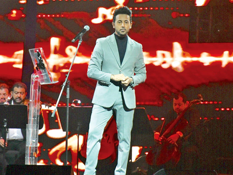 أطرب الفنانان أنغام وفؤاد عبد الواحد جمهور حفل «ليلة عمر» الذي أقيم بأرض المعارض بمشرف.