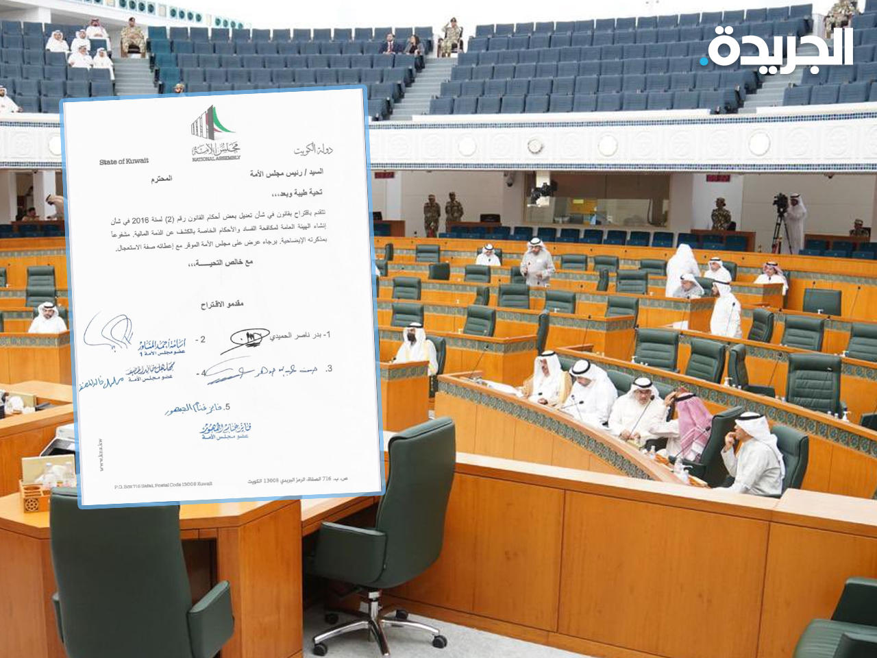 تقدم النواب بدر الحميدي وأسامة المناور وحسن جوهر ومهلهل المضف وفايز الجمهور باقتراح بقانون في شأن تعديل بعض أحكام القانون رقم (2) لسنة 2016 في شأن إنشاء الهيئة العامة لمكافحة الفساد والأحكام الخاصة بالكشف عن الذمة المالية مشفوعاً بمذكرته الإيضاحية.وجاءت مواد القانون كالتالي: