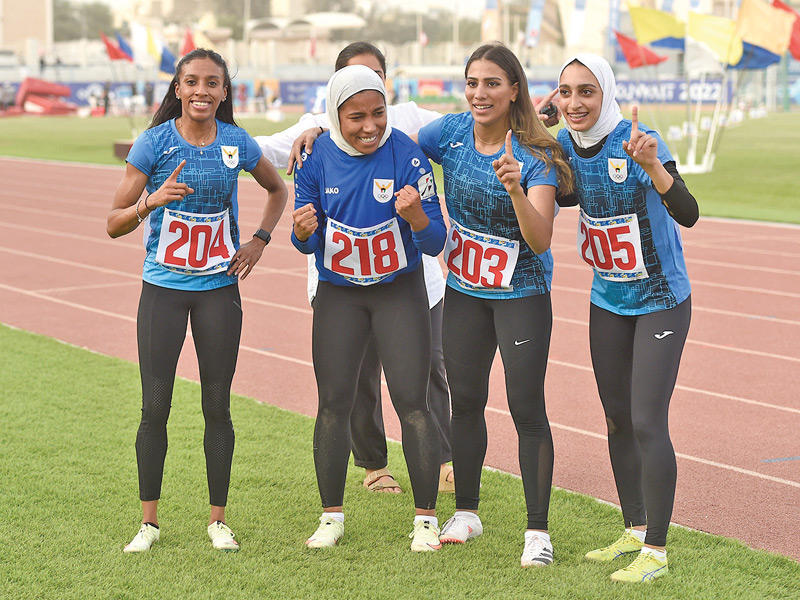ولدى السيدات، حصدت الكويت ذهبية وفضيتين وبرونزيتين في اليوم الثاني للمنافسات، وتوج فريق التتابع في سباق 4 في 100 متر، المكون من شيخة القطان ومضاوي الشمري وسلسبيل السيار ونادية الحقان بالميدالية الذهبية، بينما أحرز الفريق البحريني الفضية، والإماراتي البرونزية. وحصلت مريم حسن على فضية الوثب الثلاثي الذي نالت ذهبيته الاماراتية لطيفة الكعبي، وحصلت مواطنتها سمر المنصوري على الميدالية البرونزية.وحققت أمل الرومي فضية سباق 800 متر، بعد أن حلت ثانية خلف البحرينية تيسكت ميكونان صاحبة الذهبية، في حين ذهبت البرونزية للإماراتية رقية المرزوق.وحصدت دانة الزنكي برونزية سباق 3000 متر الذي توجت به البحرينية وينفريد يافي، وجاءت مواطنتها روث جيبت في المركز الثاني. كما حصلت عائشة الخضر على برونزية رمي القرص، بعد أن جاءت في المركز الثالث بعد الاماراتية فاطمة الحوسني المتوجة بالذهبية، والبحرينية نورة جاسم صاحبة الفضية.منافسات الرماية