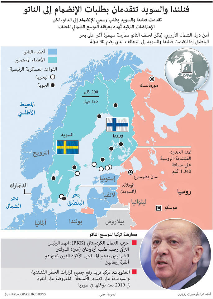رسّخ الرئيس التركي رجب طيب إردوغان تصميمه على التصدي لطلب فنلندا والسويد الانضمام الى حلف شمال الأطلسي، واصفاً البلدين بأنهما «وكر للإرهابيين»، ومجدّداً في الوقت نفسه تمسّكه بالعلاقات مع روسيا وغازها، مشدّداً على أن «هذه المسألة استراتيجية لنا».