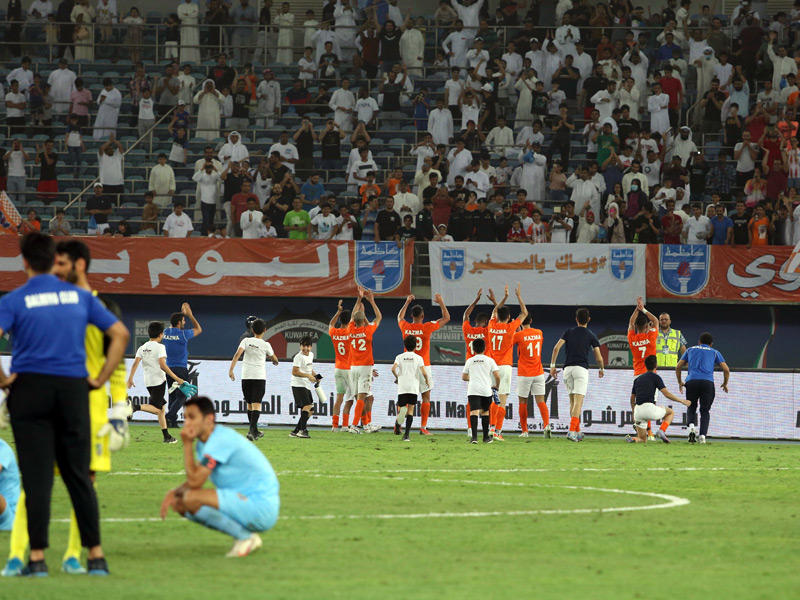تسلم كابتن فريق كاظمة حسين كنكوني الكأس الغالية من ممثل سمو أمير البلاد، سمو ولي العهد الشيخ مشعل الأحمد، وذلك في حضور رئيس نادي كاظمة أسعد البنوان، ورئيس اتحاد كرة القدم عبدالله الشاهين.وتوجه كنكوني للاعبي البرتقالي، حيث احتفلوا بالكأس الثامنة في تاريخ النادي وسط فرحة عارمة.يذكر أن فريق كاظمة حرص على ارتداء قمصان حملت على صدرها صورة سمو أمير البلاد الشيخ نواف الأحمد.