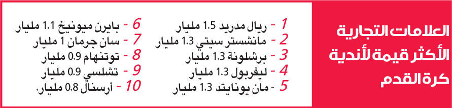 وتراجع تصنيف برشلونة بعد أن احتل المركز الثاني الموسم الماضي، رغم زيادة قيمة علامتها التجارية بنسبة 5 في المئة، وتجاوزه مانشستر سيتي الذي تقدم بنسبة 19 في المئة، وانتزع المركز الثاني بفارق مليوني يورو فقط (بواقع مليار و327 مليون يورو بدلا من مليار و325 مليونا).