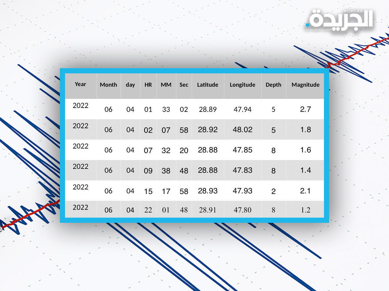 تراوحت ما بين 1.2 إلى 2.7 بمقياس ريختر