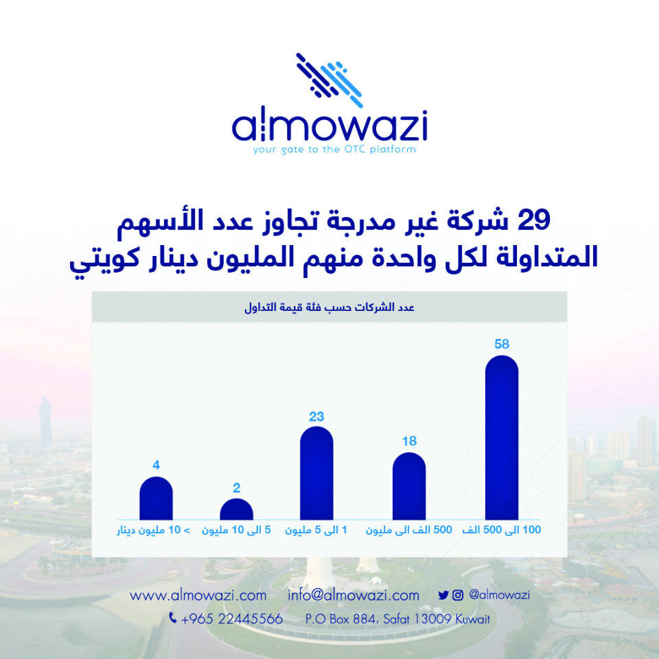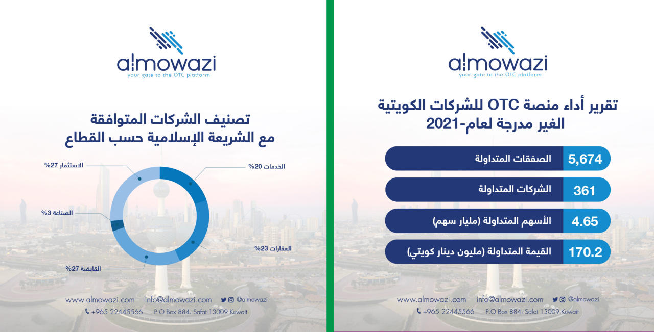 أصدرت «الموازي دوت كوم» المنصة المتخصصة في توفير معلومات وبيانات الشركات المساهمة غير المدرجة الخاضعة لنظام تداول أوراق المالية غير المدرجة «OTC» في بورصة الكويت، تقريرها السنوي عن 2021 الذي حمل عنوان «التحديات والفرص... منصة أو تي سي 2021» بهدف تسليط الضوء على أبرز التطورات التي عاصرها نظام «OTC» خلال 2021 والاتجاهات الرئيسية لأنشطة التداول عبر النظام مع التركيز خصوصاً على أداء الشركات الأكثر نشاطاً خلال العام الماضي.