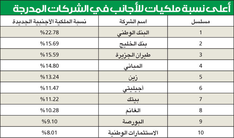 الملكيات الأجنبية تزداد في البورصة و«الوطني» يرتفع إلى 22.78%