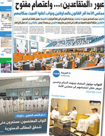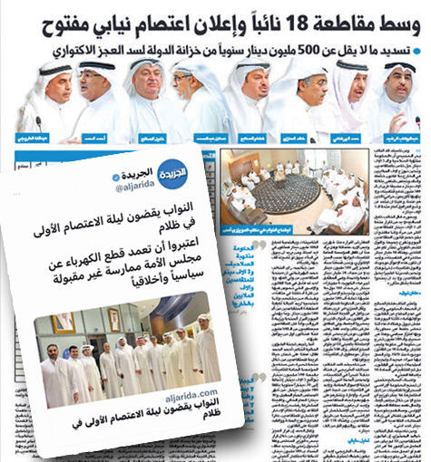 ولم يكلف مصدرو البيان، الذي ينضح بإلقاء التهم، أنفسهم عناء أن يتصفحوا أعداد «الجريدة» ليروا كم خبراً على صفحاتها البرلمانية بل على صفحتها الأولى، وكم تغريدة أطلقتها بشأن هذا الاعتصام، وكم سلطت الضوء على ما حدث معهم؛ فالصحيفة التي تريد أن تتجاهل حدثاً لا تنشر عنه خلال 4 أيام فقط من يوم إعلانه 4 أخبار كبيرة مطبوعة، أحدها مانشيت على الصفحة الأولى، بمعدل خبر كل يوم ما يعني أن التغطية لم تنقطع يوماً واحداً، كما لا تكلف نفسها عناء أن تنشر عبر حسابها على تويتر 11 تغريدة إحداها فيديو خاص للنائب شعيب المويزري، هذا إضافة إلى تناول الاعتصام بالتعليق والتحليل في مقالات عديدة بأقلام عدد من أهم كتاب «الجريدة».