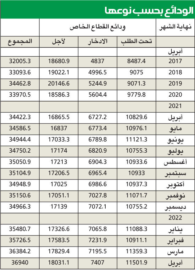 ووفق آخر التقرير المالي الصادر عن بنك الكويت المركزي (2020) فقد نمت محفظة القروض لدى البنوك المحلية بنحو 3.5 في المئة، كما ارتفعت أرصدة التسهيلات الشخصية بنحو 4.9 في المئة وتشكل 43.4 في المئة من إجمالي المحفظة، ونمت إجمالي ودائع القطاع الخاص لدى البنوك المحلية بنحو 3 في المئة في نهاية عام 2020.نمت ودائع الادخار لشهر أبريل عن شهر مارس بنسبة 2.8 في المئة، حيث بلغ مجموع الادخار لشهر أبريل 2022 مبلغ 7407 ملايين دينار وبلغ في شهر مارس 7195.5 مليون دينار، كما نمت بنسبة 34.7 في المئة خلال خمسة سنوات من أبريل 2017 وحتى أبريل 2022، وبلغ الادخار في أبريل عام 2017 مبلغ وقدره 4837 مليون دينار، وبلغ في أبريل 2022 مبلغ قدره 7407 مليون دينار.وفي مقارنة للودائع خلال خمس سنوات (2017-2022) تبين أن الودائع للقطاع الخاص (يشمل الأفراد والمؤسسات) نمت بنسبة 13.3 في المئة، أي بلغ مجموع الودائع في أبريل لعام 2017 مبلغ 32005.3 مليون دينار وبلغ في أبريل لعام 2022 مبلغ 36940 مليون دينار.وفيما يتعلق بالقروض الاستهلاكية، فقد نمت في خمس سنوات (2017-2022) بنسبة 45.4 في المئة، كما انخفضت القروض الاستهلاكية في أبريل 2022 عن مارس 2022 بنسبة 37.3 بالمئة، وارتفع مجموع التسهيلات بنسبة 26.6 في المئة من أبريل لعام 2022 عن أبريل لعام 2017، وزاد مجموع التسهيلات الشخصية بسبة 21.5 في المئة خلال أبريل عن شهر مارس لعام 2022.