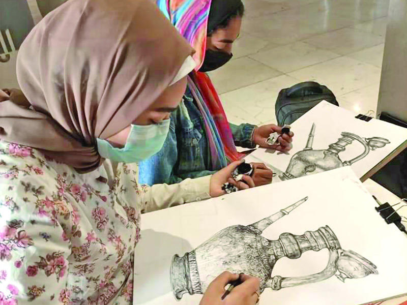 طلبة «فنون حلوان» يعيدون البهاء لمقتنيات عتيقة بـ «الحبر الأسود»