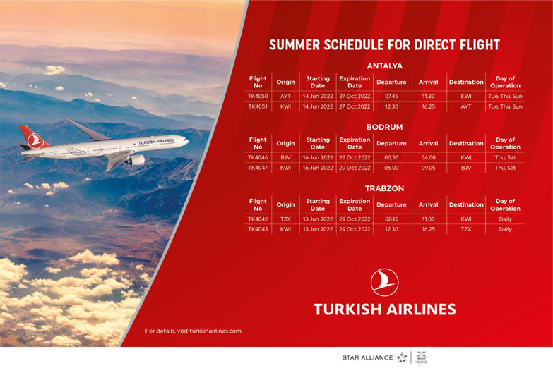 الخطوط الجوية التركية تعيد إطلاق رحلاتها المباشرة من الكويت إلى أنطاليا وبودروم وطرابزون