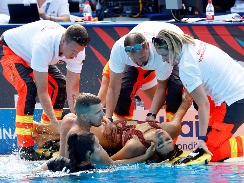 أُنقذت الأميركية أنيتا ألفاريس بشكل دراماتيكي من قاع المسبح من قبل مدربتها، بعد أن أغمي عليها خلال أدائها ضمن منافسات السباحة الإيقاعية في بطولة العالم للسباحة المقامة في العاصمة المجرية بودابست.وقفزت المدربة الإسبانية أندريا فوينتس لإنقاذ ألفاريس (25 عامًا) التي غرقت في قاع المسبح، ولم تعد قادرة على التنفس خلال أدائها في نهائي فئة الفردي الحر في السباحة الإيقاعية ليلة أمس.