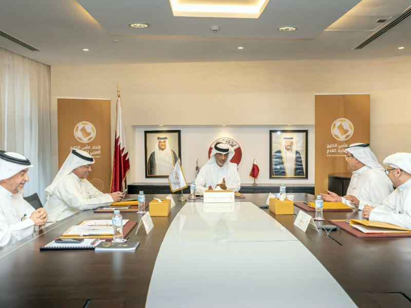 عقد المكتب التنفيذي لاتحاد كأس الخليج العربي لكرة القدم، اليوم، اجتماعاً برئاسة الشيخ حمد بن خليفة، رئيس الاتحاد، تمت خلاله مناقشة العديد من المواضيع المدرجة على جدول الأعمال، وفي مقدمها تقرير اللجنة التفقدية للاتحاد، عقب زيارتها الأخيرة لمدينة البصرة التي تستضيف منافسات «خليجي 25».وقدم الأمين العام للاتحاد جاسم الرميحي شرحاً مفصلاً عن استعدادات البصرة لاستضافة البطولة، حيث وضع المكتب التنفيذي أمام آخر التطورات وتقدم العمل في الملاعب والفنادق بالمدينة.