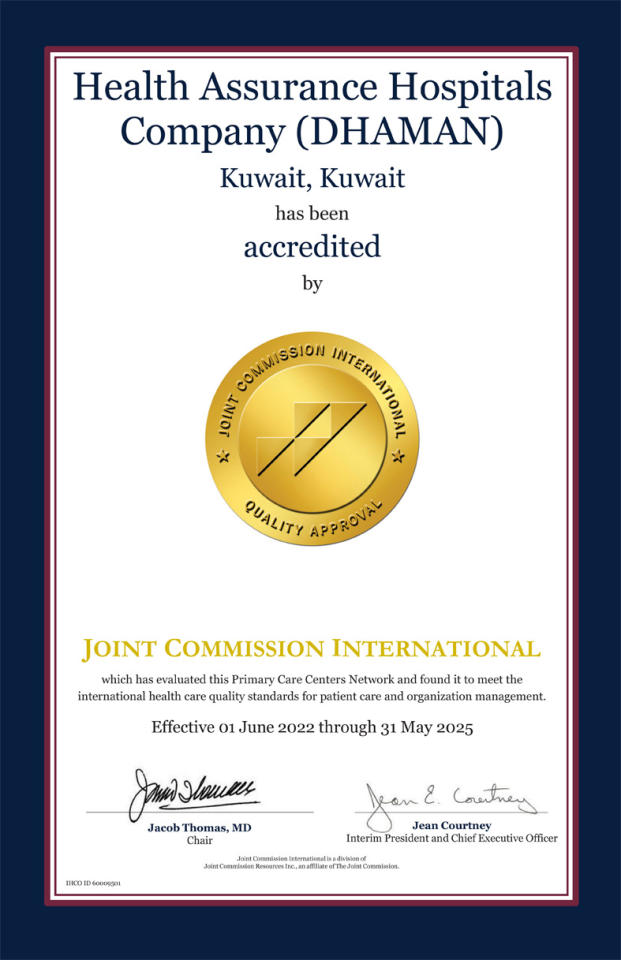 أعلنت شركة مستشفيات الضمان الصحي (ضمان) حصولها على شهادة الاعتماد الدولي من اللجنة الدولية المشتركة لجودة الخدمة الصحية (JCI) لجميع مرافق مراكزها الصحية، لتصبح بذلك أول مؤسسة رعاية صحية تحصل على هذا الاعتماد الدولي المهم على مستوى مراكز للرعاية الصحية الأولية في الكويت. وتعتبر اللجنة الدولية المشتركة (JCI) أكبر جهة اعتماد في مجال الرعاية الصحية بالولايات المتحدة الأميركية والرائدة في العالم، وشهادات (JCIA) التي تمنحها هذه اللجنة بمنزلة اعتماد دولي للتصديق على الضوابط وأفضل الممارسات في مجال الجودة وسلامة المرضى.