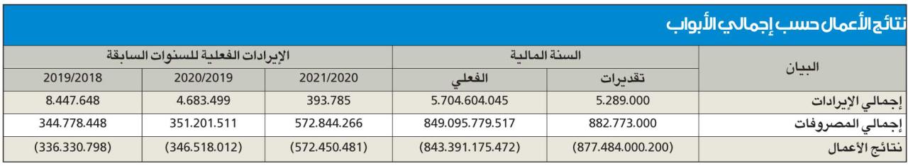وأظهر الحساب الختامي، في مقارنة مع السنوات المالية السابقة، أن إجمالي المصروفات الفعلية عن السنة المالية 2021/2020 بلغ 572.8 مليون دينار بصافي عجز 572.4 مليونا، فيما بلغت المصروفات 351 مليونا عن السنة المالية 2020/2019 بصافي عجز 346 مليونا، كما بلغت 344 مليونا عن سنة 2019/2018 بصافي عجز 336 مليونا.