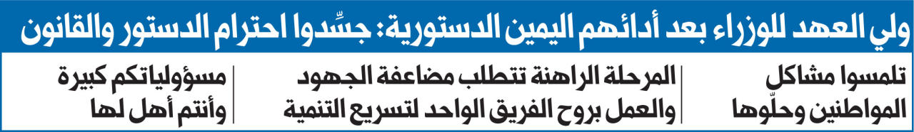 • «العمل الوزاري في فترة التحديات الجسام يتطلب بذل الغالي والنفيس»