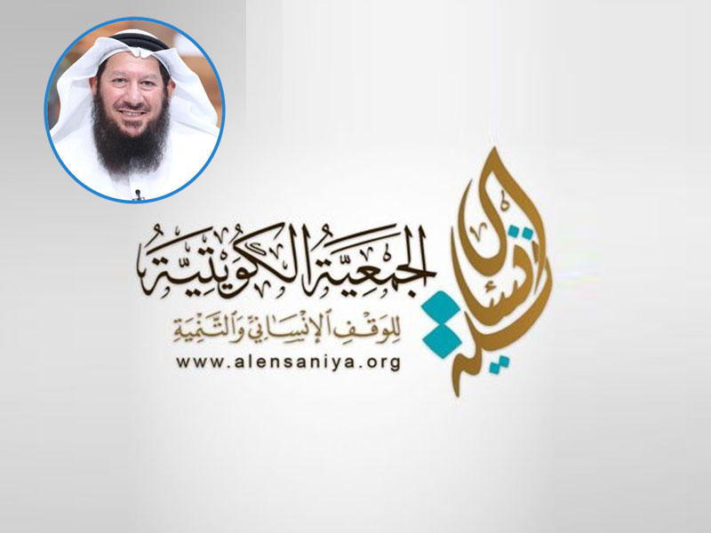 شعار الجمعية الكويتية للوقف الإنساني والتنمية وفي الاطار رئيس مجلس إدارة الجمعية م. نصار العبدالجليل