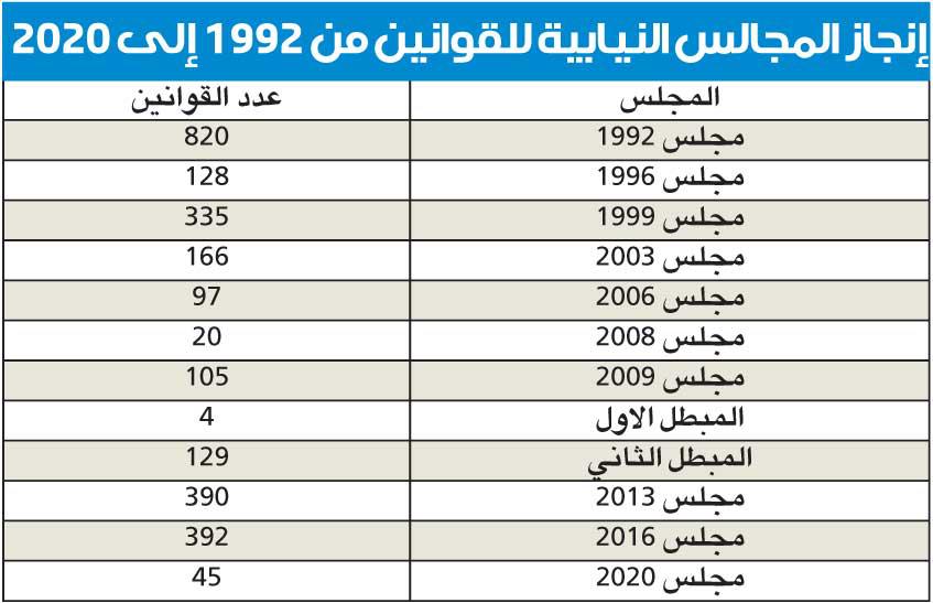 مجلس 1992 الأكثر إنجازاً للقوانين بـ 820... و45 قانوناً في 2020