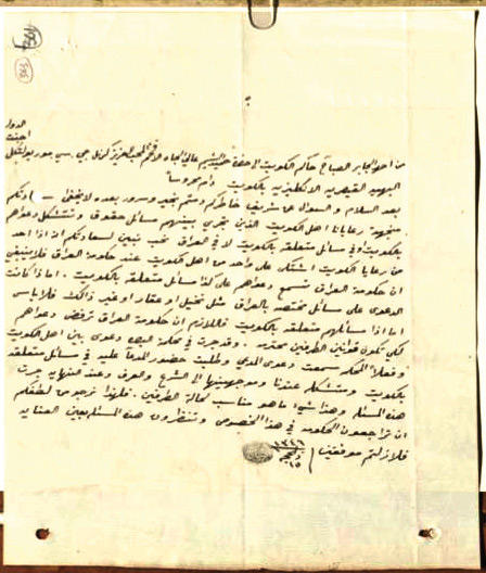 وثيقة لها تاريخ: الشيخ أحمد الجابر يطلب من الإنكليز رفض تقاضي الكويتيين بالعراق