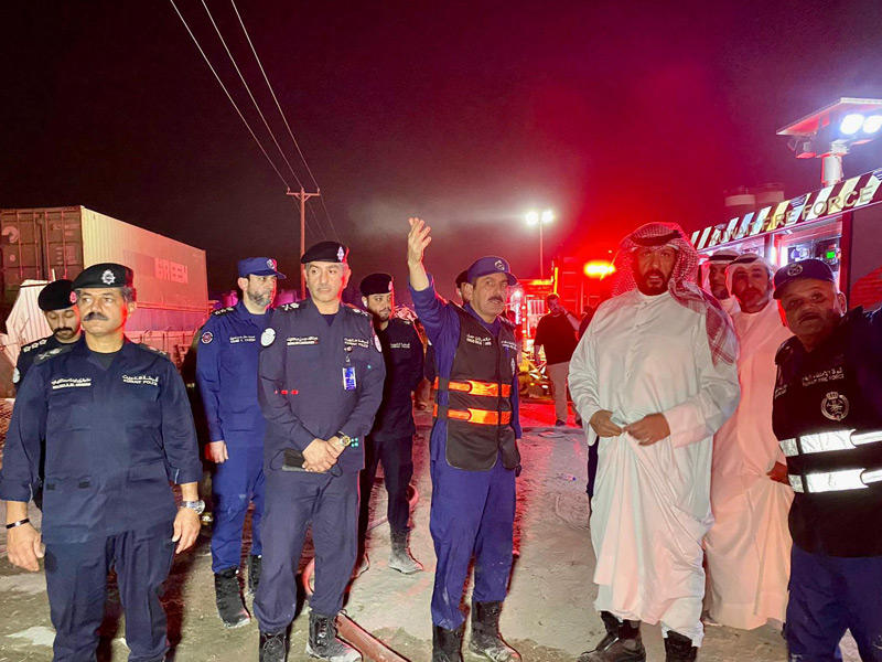 وذكر السلمان إن فرق «الإطفاء» نجحت في إخماد النار، بعد 5 ساعات من المكافحة التي اشرف عليها ميدانيا رئيس القوة، الفريق خالد المكراد، ونائبه لقطاع المكافحة اللواء جمال البليهيص، وبمشاركة اكثر من 150 رجل إطفاء، ثم شرعوا في التفتيش بالموقع لضمان عدم وجود أي مصادر للنيران في موقع الحادث.وأوضح أن ضباط إدارة التحقيق في حوادث الحريق وضباط قطاع الوقاية انتقلوا الى موقع البلاغ للمعاينة والتحقيق في أسباب اندلاع النيران، لافتا الى أن الحادث لم يسفر عن وقوع أي إصابات، واقتصر على الأضرار المادية، مشيرا الى أن وكيل وزارة الداخلية المساعد لشؤون الأمن العام، اللواء عبدالله الرجيب، والمدير العام لأمن محافظة الأحمدي اللواء وليد شهاب، وعدد من القيادات الأمنية، كانوا في موقع الحريق.* محمد الشرهان