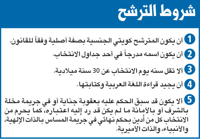 في ظل مرحلة فارقة من تاريخ البلاد والتزام حكومي غير مسبوق بتطبيق القانون والحرص على عملية انتخابية خالية من شوائب الفرعيات وشراء الأصوات، مع الالتزام بالتصويت بالبطاقة المدنية، ومع ما رسمته كلمات سمو ولي العهد في الكلمة المهمة التي ألقاها نيابة عن صاحب السمو، والتي جزم فيها بأنه لن تكون هناك تدخلات في اختيارات الشعب لممثليه، بات على الشعب أن يحقق ما عليه من طرف المعادلة الآخر الذي طلبته منه القيادة السياسية بـ «إعادة تصحيح مسار المشهد السياسي بالشكل الذي يحقق مصالحه العليا»، مما يجعل كلمة الحسم رهن إرادة الشعب واختياراته في الانتخابات النيابية التي صدر مرسوم الدعوة بإجرائها 29 سبتمبر المقبل.وحدد مرسوم دعوة الناخبين لانتخابات أعضاء مجلس الأمة 2022 الذي نُشر أمس في ملحق الجريدة الرسمية «الكويت اليوم»، موعد الاقتراع، على أن يُفتح باب الترشح اعتباراً من اليوم ولمدة 10 أيام متتالية، حتى نهاية دوام 7 سبتمبر.وفي بيان «الداخلية» أمس الذي حددت فيه شروط الترشح وآليته، قالت إن «للمرشح الحق في التنازل عن الترشح بطلب يقدمه كتابة إلى مخفر الشرطة الخاص بالدائرة المرشح بها، في موعد أقصاه قبل ميعاد الانتخاب بسبعة أيام على الأقل»، موضحة أنه «إذا كان من يريد ترشيح نفسه ممن تولوا الوظائف العامة لا يجوز له ابتداءً من اليوم التالي لقفل باب الترشيح حتى انتهاء عملية الانتخاب ممارسة أي اختصاص من اختصاصات وظيفته، ويشمل ذلك الوزراء ورجال القضاء، والنيابة العامة، وأعضاء الإدارة العامة للتحقيقات، إلا إذا استقالوا مقدماً من وظائفهم».