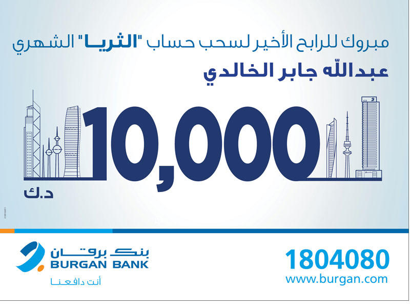 أعلن بنك برقان فوز عبدالله جابر الخالدي في السحب الشهري لحساب «الثريا للراتب»، والذي ربح فيه جائزة قيمتها 10.000 دينار. وذكر البنك أن هذا يعد السحب الشهري الأخير لحساب «الثريا للراتب»، كما أنه من المزمع إعادة إطلاق الحساب قريباً بحلّة جديدة تماماً، مع مجموعة متكاملة من المزايا الجديدة. ومنذ إطلاقه، كافأ حساب «الثريا» عملاء البنك الجدد والقائمين عبر منحهم فرصة مميزة للفوز بـ 10.000 دينار شهرياً عند تحويل راتبهم. وتأتي خطوة إعادة إطلاق الحساب في إطار جهود البنك المستمرة لتطوير خدماته ومنتجاته وتعزيز تجربة عملائه.