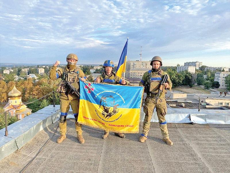 على وقع هجوم واسع دفع روسيا للتخلي المفاجئ عن واحد من الخطوط الرئيسية لجبهة القتال، أعلن الجيش الأوكراني، أمس، استعادته مناطق يتجاوز مجموع مساحتها 3000 كيلومتر مربّع هذا الشهر، مشيراً إلى أن قواته رفعت العلم فوق تشاكالوفا بمقاطعة خاركيف بعد تحريرها وتتحرّك لاستعادة السيطرة على بلدات وقرى في محيط مدينة إيزيوم الاستراتيجية.ويعد الانسحاب من مدينة إيزيوم أسوأ هزيمة للقوات الروسية منذ طردها من العاصمة كييف في مارس، وترك الآلاف من جنودها وراءهم ذخيرة ومعدات مع فرارهم.وفي أكثر التحوّل الأكثر أهمية في القتال، الذي رجحت كفته لمصلحة موسكو على مدى شهور، أوضح القائد العام للجيش فاليري زالوجني أن القوات الأوكرانية تقدمت إلى الشمال من خاركيف في نطاق 50 كيلومتراً من الحدود مع روسيا، كما تتقدم أيضاً صوب الجنوب والشرق في ذات المنطقة، مشدداً على أن «أوكرانيا تواصل تحرير أراضٍ احتلتها روسيا».
