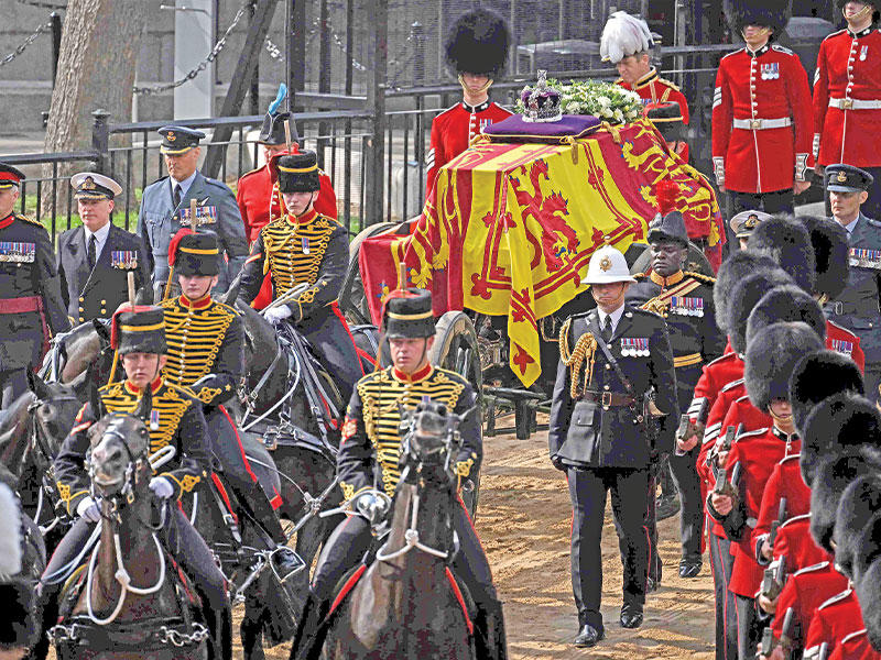 بدأ مئات الآلاف من البريطانيين، اعتبارا من أمس ولمدة 5 أيام، إلقاء نظرة الوداع في لندن على ملكتهم الراحلة إليزابيث الثانية، التي تتمتع بشعبية كبيرة، بعد نحو أسبوع على وفاتها في أسكتلندا. ووصل نعش الملكة، التي توفيت الخميس عن 96 عاما، إلى العاصمة البريطانية مساء أمس، ونقل إلى بهو ويستمنستر، أقدم صالة في البرلمان البريطاني، في موكب رسمي وسط لندن، وبعد امضاء ليل الثلاثاء ـ الأربعاء في قصر باكنغهام.ويتوقع أن يزور مئات الآلاف بهو ويستمنستر، الذي ستبقى أبوابه مفتوحة في هذه المناسبة 24 ساعة في اليوم، لكن الأمر يحتاج إلى الصبر بوجود طوابير طويلة يمكن أن تمتد لأميال، وحذرت الحكومة من «قيود صارمة» تشبه تلك المتخذة في المطارات لإدارة حضور الحشود .ويرتقب أن يكون الحشد كبيراً هذه المرة خلال «جنازة القرن»، وهي أول جنازة وطنية منذ عام 1965 (جنازة ونستون تشرشل) والتي ستنظم الاثنين المقبل، بحضور نحو 500 شخصية أجنبية، والعديد من أفراد العائلات المالكة، لكن لم تتم دعوة روسيا وبيلاروس وبورما وكوريا الشمالية.
