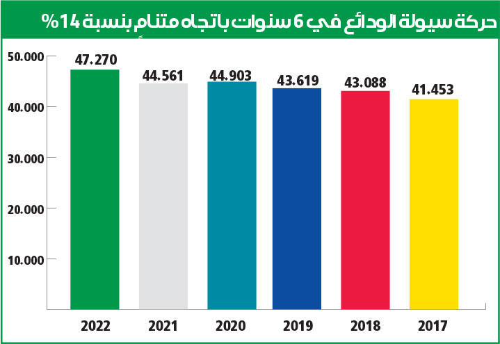 • السيولة المصرفية في أعلى مستوياتها والودائع زادت ٦٪ في ٧ أشهر بقيمة 2.709 مليار دينار