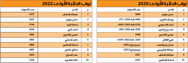 شهدت نتائج الدائرة الأولى عاصفة تغيير اقتلعت في طريقها 6 نواب سابقين من مجلس 2020، في حين جدد ناخبوها الثقة بأربعة أعضاء منه، لتبلغ نسبة التغيير في الدائرة 60%، وسط عودة النواب القدامي أحمد لاري وعادل الدمخي وصالح عاشور إلى البرلمان. أغلقت لجان الدائرة الأولى أبوابها في الثامنة مساء أمس، بعدما استمرت عملية الاقتراع 12 ساعة متواصلة، وشهدت مناطق لجان الدائرة ارتفاعاً في الإقبال من جانب الناخبين البالغ عددهم 100185، بواقع 48610 ناخبين و51575 ناخبة، خصوصاً في الفترة المسائية.