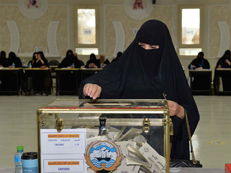 وحضر العنصر النسائي في مدرسة العدان الابتدائية، التي خصصت للإناث للمشاركة بالعرس الديموقراطي، بوجود 8 لجان رئيسية وفرعية، بحيث كان النصيب الأكبر للتوافد امام اللجان الفرعية، لقربها بعضها من بعض، إذ بلغت نسبة التصويت حتى الساعة الحادية عشرة في اللجنتين 2 و3، نحو 233 صوتا مقابل 1970 ناخبة مقيدة في كلتا اللجنتين. وشهدت مدرسة حصة حنيف في منطقة القرين حضوراً لافتاً في الساعات الصباحية الأولى، لكثرة المقيدين بها البالغ عددهم8661 ناخبا، حيث ازدحم المقترعون أمام اللجان الفرعية للبحث عن الأسماء والقيود المخصصة لهم، والتي كانت مسلسلة بالحروف الأبجدية، حيث ساعد رجال الأمن على تنظيم الممرات المؤدية لقاعات الاقتراع. كان الإقبال على اللجان الفرعية بكثرة، إذ وصل عدد من أدلوا بأصواتهم حتى الـ 12 ظهرا في مدرسة حصة حنيف الابتدائية في لجنة رقم واحد 160 ناخبا. وعلى المسار الانتخابي، سارت مدرسة حسين العسعوسي الابتدائية في منطقة القرين مثل جميع المدارس المخصصة لعمليات الاقتراع، ولم يختلف مشهدها عن مشهد غيرها من التفاعل والحضور لدى العنصر النسائي، والذي تم توزيعه على 8 لجان فرعية ورئيسية، للمشاركة في العرس الديموقراطي، وزاد الإقبال خلال الفترة المسائية، والتي انطلقت عند الـ 12 ونصف بحضور لافت للنظر للإناث، حيث بلغت نسبة الأصوات في لجان 4 و5 و7 نحو 755، أي بنسبة 10 في المئة مقابل أعداد المقيدين بها. وشهدت منطقة الرقة ازدحاما مروريا عند الساعة 1 ظهرا عند مدخل مدرسة سالم المبارك الصباح والمقررة لاقتراع فئة الذكور، الذين يبلغ عددهم 7153 بمقابل 6 لجان واحدة رئيسية وخمس فرعية، وكانت المشاركة في لجان 2 ، و3 و4 بنحو 801 صوت عند الواحدة ظهرا، حيث كانت الأصوات في لجنة 5 فقط 114، أي بمجمل 915 في أربع لجان فقط.وفي مشهد متكرر، لم يكن هناك إقبال خلال فترة الظهيرة لدى مدرسة غزية بنت جابر الابتدائية في منطقة الرقة والمخصصة لتصويت فئة الإناث، حيث كانت التوافد متوسطا. وبلغت نسبة الأصوات بكل اللجان الـ 8 التي خصصت للاقتراع عدد 1021 صوتا حتى الواحدة ظهراً بواقع 12 في المئة من نسبة أصوات المقترعات. وبالنسبة لمنطقتي الفحيحيل وأبوحليفة كان الحضور متوسطاً في كل من مدارس أحمد بن محمد الفارسي، والمعري للذكور وفاطمة عبدالله الحقان، وروضة السلامة للإناث.