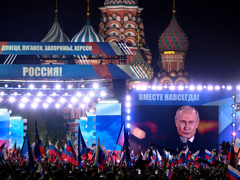 وإضافة إلى إعلان أوكرانيا أن جيشها يطوق آلاف الجنود الروس في ليمان، وجدت روسيا نفسها معزولة ومعرضة لضغوط جديدة أمس، غداة ضمها رسمياً 4 مناطق أوكرانية، ما أثار وابلاً من الإدانات الدولية، ورفضاً من كييف المصممة على استعادة أراضيها.ورفض الاتحاد الأوروبي والولايات المتحدة وحلف شمال الأطلسي (ناتو) ودول أخرى مثل تركيا ضم هذه الأراضي الجديدة، وأعلنت كييف أنها ستلجأ إلى محكمة العدل الدولية.وفي تحذير شديد اللهجة أعلنت الولايات المتحدة أيضا أنها ستفرض عقوبات بالتوافق مع دول مجموعة السبع، على «أي بلد أو فرد أو كيان يدعم محاولات روسيا للاستيلاء بشكل غير قانوني على أراض أوكرانية».وأنجز الرئيس الروسي فلاديمير بوتين مراسم الضم مساء أمس الأول، أمام عدة آلاف تجمعوا لحضور حفل موسيقي احتفالي في الساحة الحمراء بموسكو. وقال: «النصر سيكون لنا»، بينما يواجه جيشه صعوبات في أوكرانيا في الوقت نفسه.وقبيل ذلك في الكرملين، وقع بوتين على وثائق ضم المناطق الأربع، إلى جانب قادة المنطقتين الانفصاليتين في أوكرانيا دونيتسك ولوغانسك (شرق)، وتلك التي احتلتها القوات الروسية في زابوريجيا وخيرسون (جنوب).وفي خطابه بالكرملين، طالب بوتين كييف في خطابه بوقف «جميع الأعمال العدائية والعودة إلى طاولة المفاوضات».ورفض الرئيس الأوكراني فولوديمير زيلينسكي أي مفاوضات مع موسكو طالما أن بوتين هو الرئيس، وأشاد «بالنتائج المهمة» للهجوم المضاد لقواته، معلناً أنه «سيوقع على ترشح أوكرانيا لانضمام سريع إلى حلف شمال الأطلسي (ناتو)».وفي كلمة ألقاها بالبيت الأبيض، تعهد الرئيس الأميركي جو بايدن «بدعم جهود أوكرانيا لاستعادة السيطرة على أراضيها» وقال إن بوتين «لن يرهب» الولايات المتحدة وحلفاءها. وخاطب بايدن مباشرة نظيره الروسي موجها إصبعه إلى الكاميرا ليحذره من شن هجوم على أي من دول الحلف الأطلسي.وقال: «أميركا مستعدة بالكامل، مع حلفائنا في الناتو، للدفاع عن كلّ شبر من أراضي الناتو» وأضاف تأكيداً على تحذيره «سيد بوتين، لا تسئ فهم ما أقوله، كلّ شبر».ورداً على سؤال حول احتمال استخدام روسيا أسلحة نووية، أقر مستشار البيت الأبيض للأمن القومي جايك ساليفان بأن «هناك خطراً نظراً للخفة التي يتحدث بها بوتين، وتلويحه بالتهديد النووي، بأن يكون يدرس ذلك»، محذراً: «كنا في غاية الوضوح حول العواقب التي ستترتب على ذلك».لكنه أضاف: «لا نرى حالياً مؤشرات على استخدام وشيك للأسلحة النووية»، مضيفاً أن «البيت الأبيض يراقب الوضع بعناية ويواصل التشاور الوثيق مع الحلفاء».اعتقال وضربات قاتلة