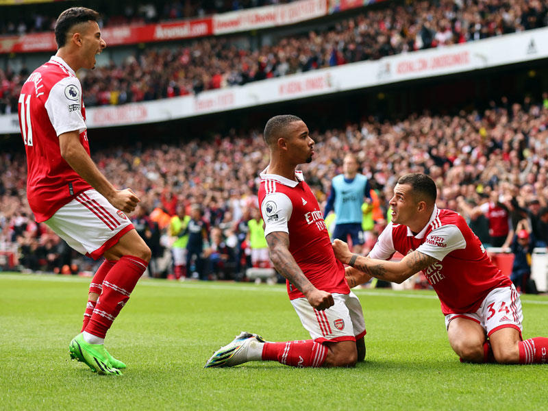 عزز فريق أرسنال صدارته للدوري الإنكليزي الممتاز لكرة القدم، عقب فوزه على ضيفه توتنهام 3-1 في ديربي شمال لندن اليوم في الجولة التاسعة من المسابقة. وشهدت هذه الجولة أيضا تعادل ليفربول مع برايتون 3-3 وفوز إيفرتون على ساوثامبتون 2-1 ونيوكاسل على فولهام 4-1، وتشلسي على كريستال بالاس 2-1، وتعادل بورنموث مع برينتفورد سلبيا، وانتهى الشوط الأول بالتعادل 1/1.وتقدم أرسنال بهدف سجله توماس بارتي في الدقيقة 20 وتعادل توتنهام بهدف سجله هاري كين في الدقيقة 31 من ركلة جزاء. وفي الشوط الثاني، سجل غابرييل جيسوس الهدف الثاني لأرسنال في الدقيقة 49، ثم أضاف غرانيت تشاكا الهدف الثالث لأرسنال في الدقيقة 67 وشهد اللقاء طرد إيميرسون لاعب توتنهام في الدقيقة 62.
