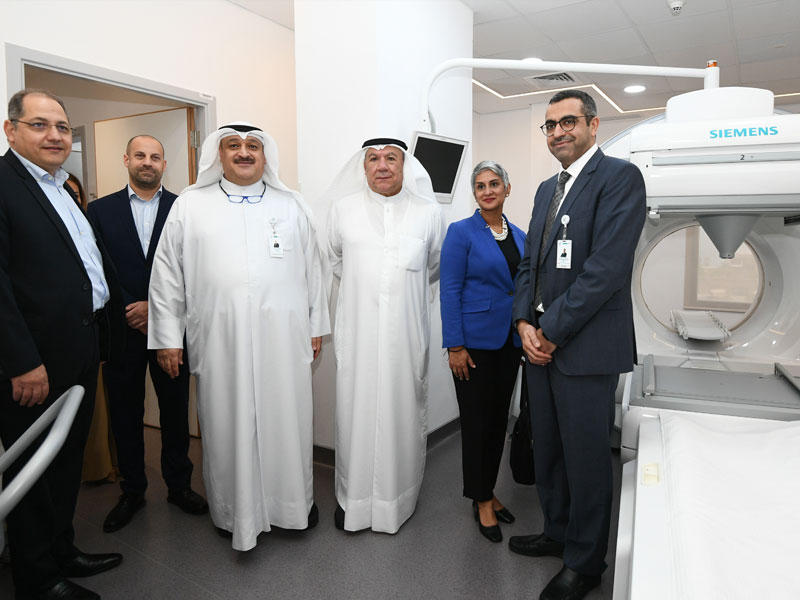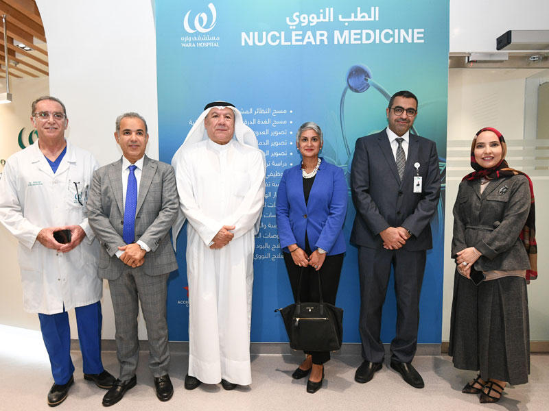 من جانبه، أكد رئيس قسم الطب النووي في «واره»، استشاري الطب النووي والتصوير الجزيئي، د. محمد مهنا، في تصريح مماثل، أن في فحوص الطب النووي يتم استخدام «الجاما كاميرا» للتصوير، وهي مصممة خصيصاً لتتبع مسار المواد المشعة وأماكن تركزها بالجسم. وأوضح أن كمية المواد المشعة المستخدمة ضئيلة جداً تحسب بطريقة علمية دقيقة، وتعتمد على عمر المريض ووزنه وحالته المرضية، كما تعطى المواد المشعة للمريض عن طريق الفم أو التنفس أو الحقن. ويقدم قسم الطب النووي في المستشفى خدمات طبية عديدة منها الاستشارات الخاصة بفحوص الطب النووي، ومسح الغدة الدرقية والجار الدرقية، وتصوير العدوى والالتهابات، وتصوير الدماغ والرئتين والكبد والمرارة، وتصوير العظام ثلاثي الأبعاد المدمج، ودراسة تروية عضلة القلب في اليوم الواحد، ودراسة تفريغ المعدة والارتجاع المريئي، واكتشاف جرثومة المعدة، وفحوص الكلى والتقييم الوظيفي لها. كما يقدم القسم خدمات علاجية منها العلاج باليود المشع لنشاط الغدة الدرقية، والعلاج النووي لآلام الركبة. حضر افتتاح قسم الطب النووي في «واره»، محافظ مبارك الكبير، محمود بوشهري، والسفيرة الكندية لدى البلاد، عليا مواني، إلى جانب إدارة المستشفى.