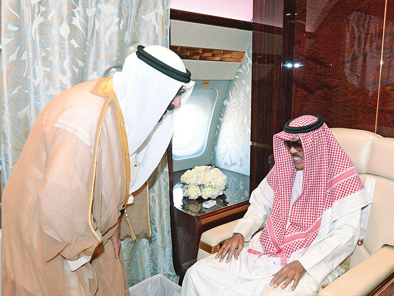 من على متن الطائرة الأميرية، وقبيل لحظات من مغادرة سمو أمير البلاد الشيخ نواف الأحمد بحفظ الله ورعايته أرض الوطن إلى إيطاليا أمس لاستكمال فحوصاته الطبية المعتادة، أكد صاحب السمو مدى اعتزازه بسمو ولي العهد الشيخ مشعل الأحمد، وأنه بالنسبة إلى سموه بـ «مكان النفس... والله يطرح فيك البركة»، داعياً أن يعينه الله ويمده بالصحة والعافية ويوفقه لما فيه خير البلاد والعباد. من جهته، طمأن سمو ولي العهد صاحب السمو على أن أوامر سموه «كلها منفذة، ولن نتصرف أو نقرر أي شيء إلا بعد عرضه على سموك وأخذ الموافقة»، مؤكداً أن «كل ما في خاطرك وكل ما في بال سموك سيتم تنفيذه حسب الأوامر الصادرة من سموك، وما نتعدى طال عمرك أوامرك».
