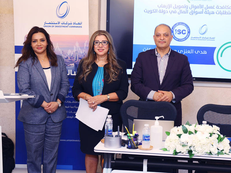 في إطار دعم شركات الاستثمار الأعضاء في اتحاد شركات الاستثمار، وتعزيز خبراتهم الفنية المتخصصة في مكافحة غسل الأموال وتمويل الإرهاب، نظم الاتحاد، في مقره، اليوم، بالتعاون مع الشركة الكويتية للمطابقة والالتزام Kuwait compliance، ورشة عمل تفاعلية لمراقبي التزام شركات الاستثمار بعنوان «آخر مستجدات وتعليمات هيئة أسواق المال في مكافحة غسل الأموال».وتناولت الورشة التفاعلية نظرة تحليلية لأبرز مؤشرات الاشتباه لعمليات غسل الأموال في قطاع الاستثمار والتعليمات المتعلقة بصناديق الاستثمار المشتركة وتطبيق تدابير العناية الواجبة، إضافة إلى انعكاس العقوبات الأميركية والاتحاد الأوروبي على روسيا وعلاقتها برصد عمليات الاشتباه، واختتمت الورشة بعرض دراسة إحدى حالات غسل الأموال في قطاع الاستثمار.