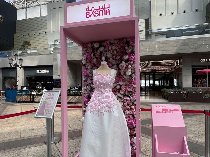 تزامناً مع شهر التوعية بسرطان الثدي «أكتوبر الوردي» وتضامناً مع المبادرة العالمية لرفع وعي المجتمع بمخاطر المرض وأهمية الكشف المبكر لعلاجه؛ أقام الأڤنيوز حملة «كوني بسمة» التفاعلية مع الزوار لتشجيع السيدات على الفحص من أجل الوقاية من سرطان الثدي والكشف المبكر، حيث بدأت الفعالية في 10 الجاري وتستمر حتى 15 منه في منطقة غراند بلازا.وتضمنت فعالية «كوني بسمة» مشاركة الزوار من خلال كتابة رسائل إيجابية على شرائط وردية تحمل عبارات التشجيع للمريضات والمتعافيات وللمرأة بشكل عام للتوعية بأهمية الكشف المبكر، ثم لصقها على المجسم ليتكون في النهاية فستاناً كاملاً من الشرائط التي ترمز إلى شهر التوعية بسرطان الثدي.