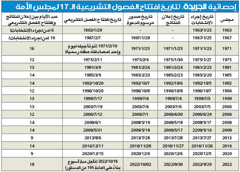 إحصائية الجريدة• أظهرت عقدها في اليوم الـ 16 من إعلان نتائج انتخابات مجلس 1971