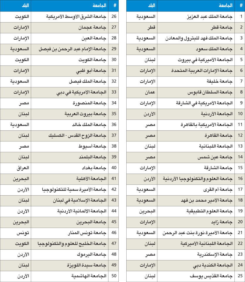 أفضل 50 جامعة في العالم العربي
