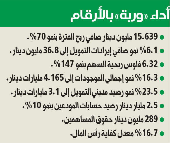 «وربة» يربح 15.6 مليون دينار في 9 أشهر بواقع 6.32 فلوس